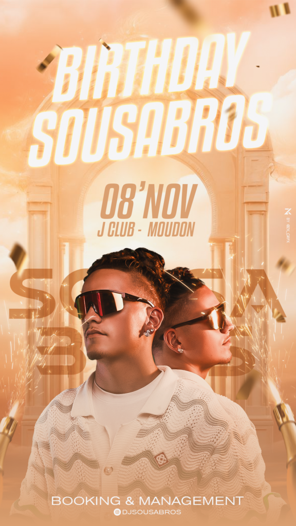 Depuis 2024, ZK Graphics collabore avec Sousabros, un duo de DJs frères en début de carrière qui ont choisi notre studio pour développer leur image et identité visuelle. Nous accompagnons leur évolution à travers la création de contenus pour les réseaux sociaux, de pochettes musicales ainsi que le développement de leur presskit digital, afin de construire une présence visuelle forte et professionnelle dès le départ. Bien que la collaboration soit récente, les contenus réalisés ont déjà contribué à donner plus de visibilité au client et à renforcer leur présence dans le monde de la nuit.