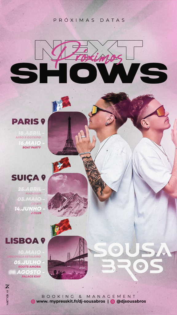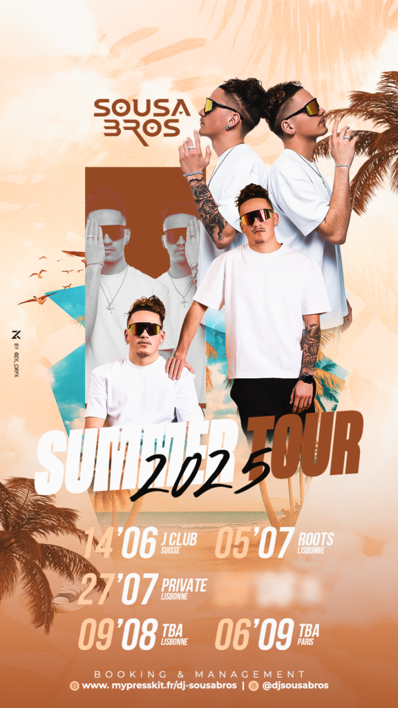 Desde 2024, a ZK Graphics colabora com os Sousabros, um duo de DJs irmãos em início de carreira que escolheram o nosso estúdio para desenvolver a sua imagem e identidade visual. Acompanhamos o crescimento do projeto através da criação de conteúdos para redes sociais, capas musicais e do desenvolvimento do presskit digital, ajudando a construir uma presença visual forte e profissional desde o início. Apesar de ser uma colaboração recente, os conteúdos criados já contribuíram para dar maior visibilidade ao cliente e destaque no mundo da noite.